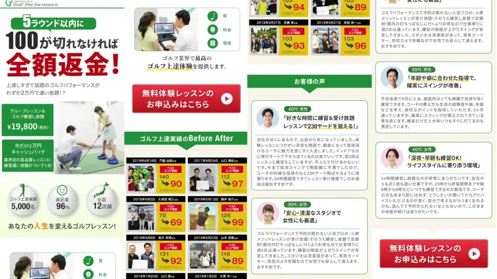 ・お客様の声を複数掲載し、実績と信頼性を視覚的に補強
